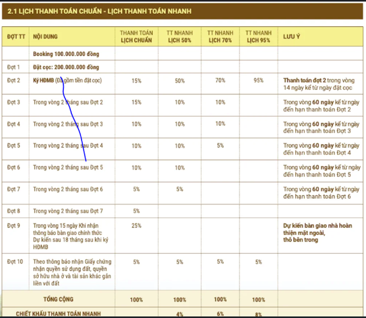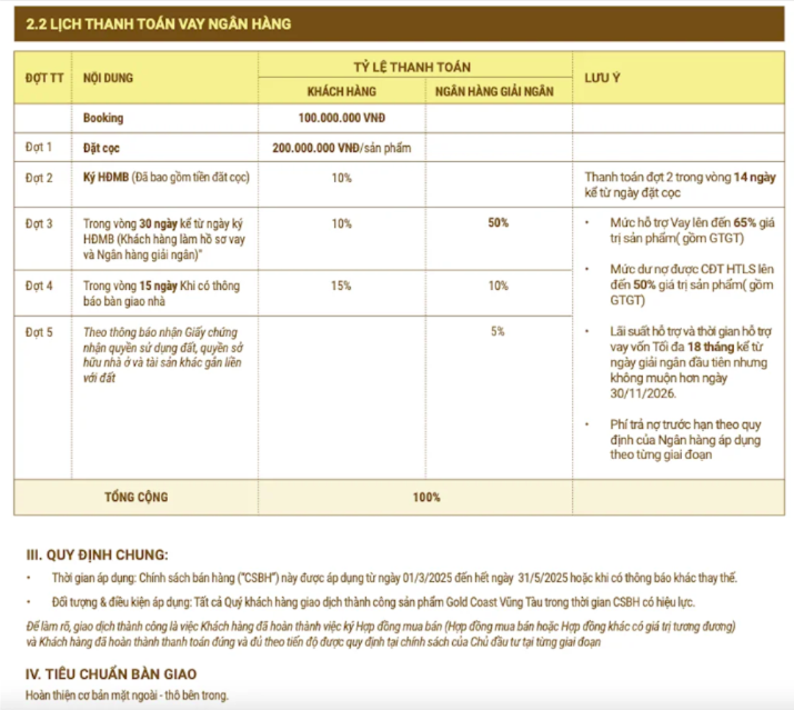 Phương thức thanh toán dự án gold coast vũng tàu