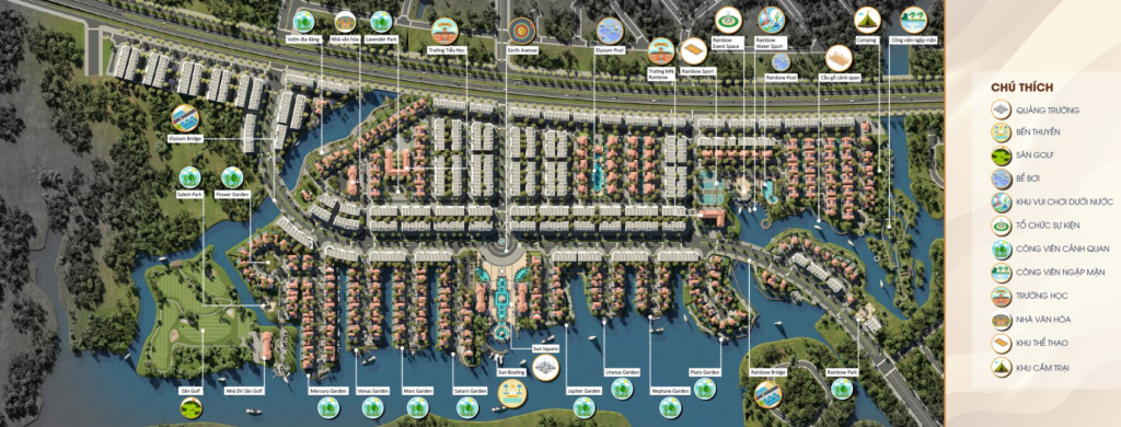 - Diện tích cảnh quan: 36 ha (triển khai Phân khu S1 trước)