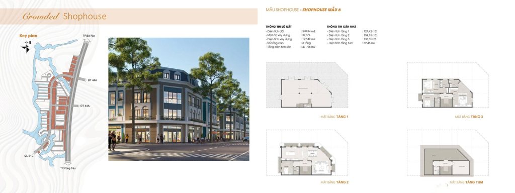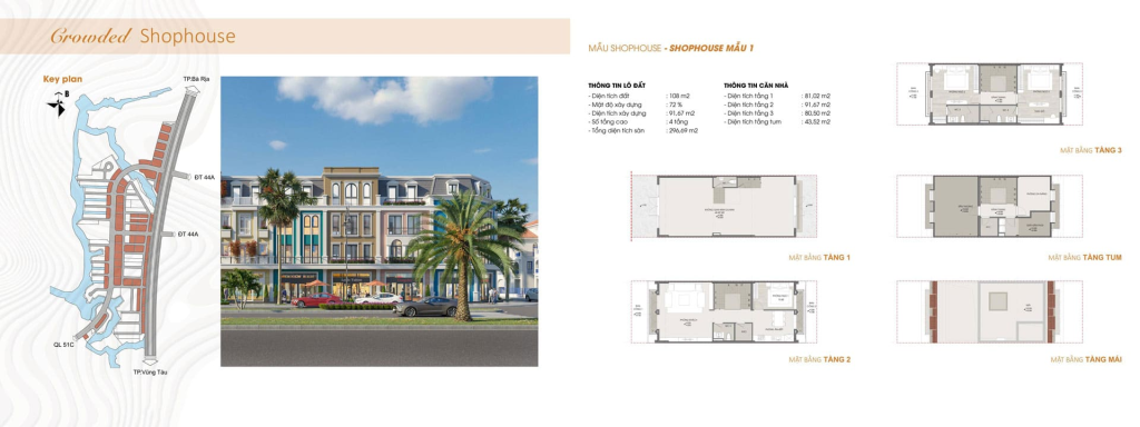 - Shophouse: Diện tích từ 108m2 – 290m2, gồm 3 tầng 1 tum