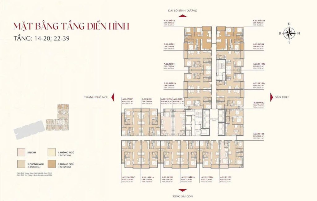 | Diện tích dự kiến: | 58.68m2 – 74.94m2 |